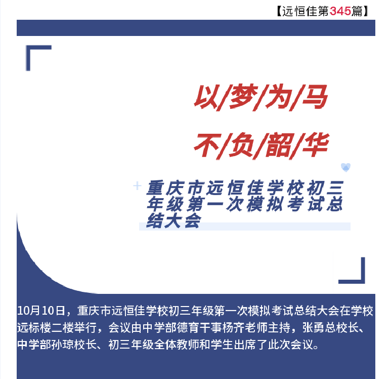 當前位置:美好學生>生涯規(guī)劃> 美好學校| 以夢為馬,不負韶華——記重慶市遠恒佳學校初三年級第一次模擬考試總結(jié)大會