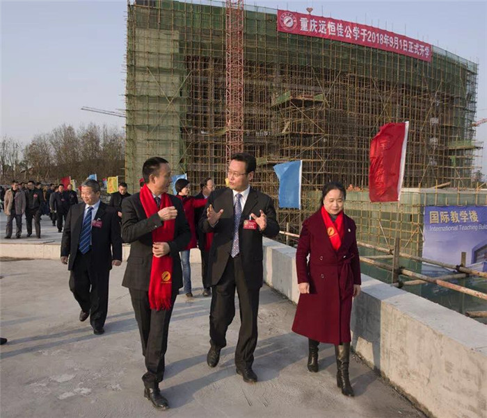 遠(yuǎn)恒佳重慶公學(xué)是長壽區(qū)重點(diǎn)引進(jìn)的項(xiàng)目,在區(qū)委區(qū)政府的高度關(guān)懷下,公學(xué)于2016年11月14日舉行開工奠基儀式,2017年12月22日18棟主體建筑全部封頂,今年5月將落成剪彩,9月正式開學(xué)。瞧,公學(xué)校園內(nèi)彩旗招展,一棟棟教學(xué)樓矗立在在溫暖的陽光下。