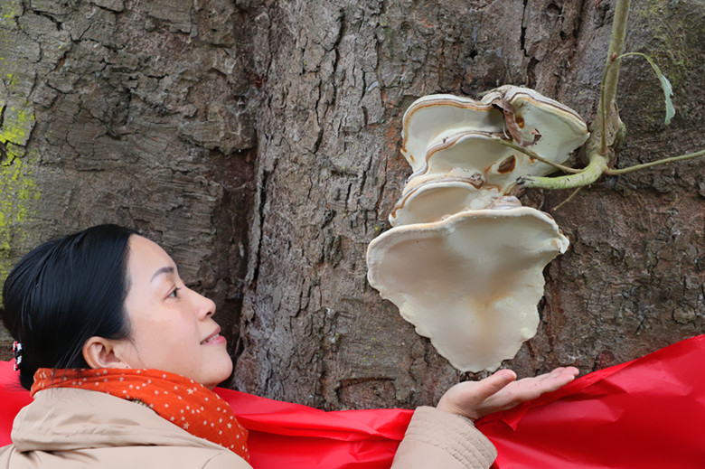 程總帶我去看校園最高處的那棵百年老黃桷樹,她說那樹不僅粗壯、蒼老,還結(jié)了靈芝呢!我最初不信,黃桷樹一般來說是不結(jié)靈芝的,但這樹真還結(jié)靈芝了,很大一朵,只是幾個月前吧,被人偷割了,僅剩下靈芝的“疤痕”在樹干上。好在程總曾經(jīng)拍得有照片,她把照片發(fā)給我,我還算目睹了那“老樹靈芝”的風(fēng)釆吧!