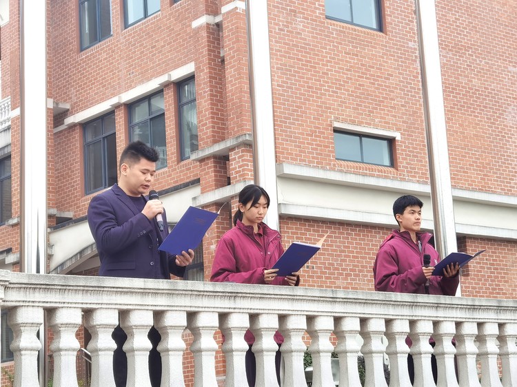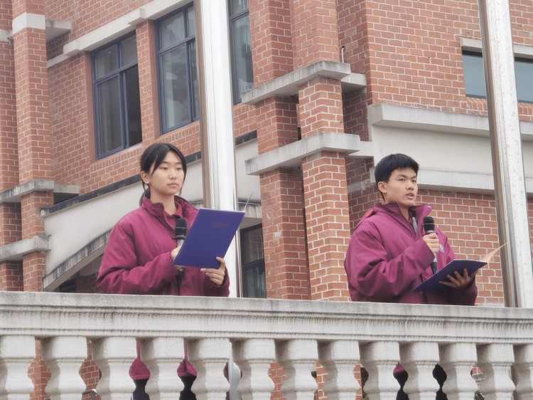 圖為學(xué)生發(fā)展中心副主任 楊齊老師進(jìn)行國(guó)旗下講話