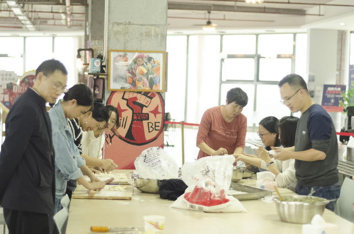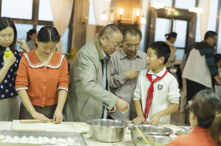 從食材的準備、清洗、切、調(diào)配,從和面、揉面、搟皮兒、包餃子、煮餃子大家全程一起合作完成,其樂融融。