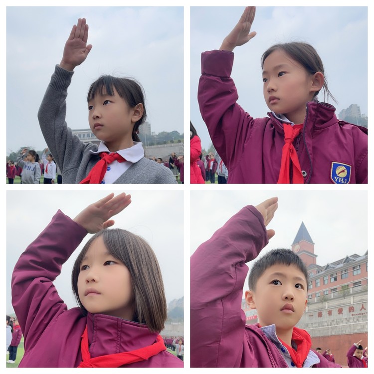 圖為:升旗儀式現(xiàn)場二年級同學(xué)的面向國旗行隊禮