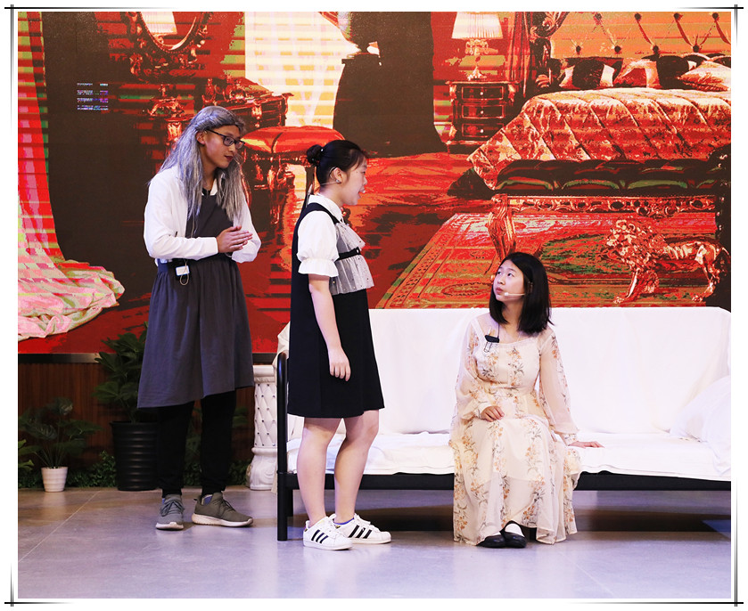觀眾被留學(xué)部學(xué)生流利的英語、標(biāo)準(zhǔn)的發(fā)音、傳神且具有表現(xiàn)力的動作深深吸引,演出的每一場景結(jié)束,都報以演員熱烈的掌聲。就像劇情結(jié)尾說的: “For never was a story of more woe than that of Juliet and her Romeo.”世界上再沒有比朱麗葉和羅密歐更悲慘的故事了。在簡單的舞臺布景和服飾再現(xiàn)中,觀眾被劇情深深吸引,盡管小學(xué)生未必能聽懂全英文的臺詞,但依然被表演者的情緒、表情與動作所感染。