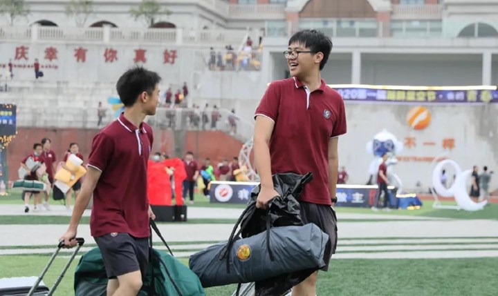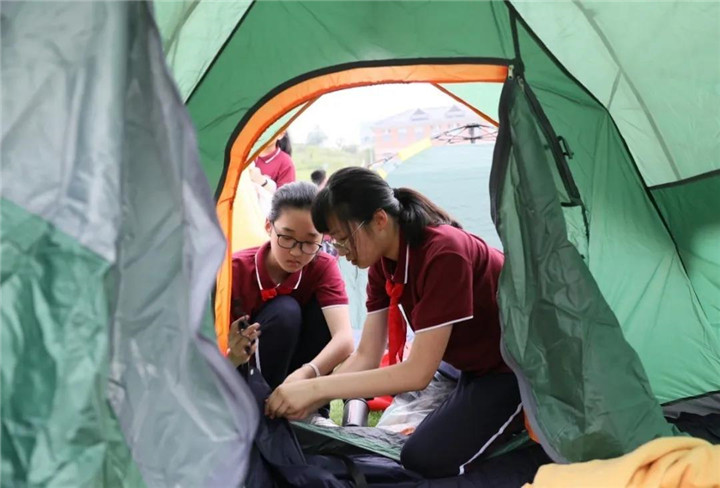 6月12日早上六點,在晨起音樂聲中,學(xué)生們收拾行李、疊起帳篷、清理現(xiàn)場,用餐上學(xué)。