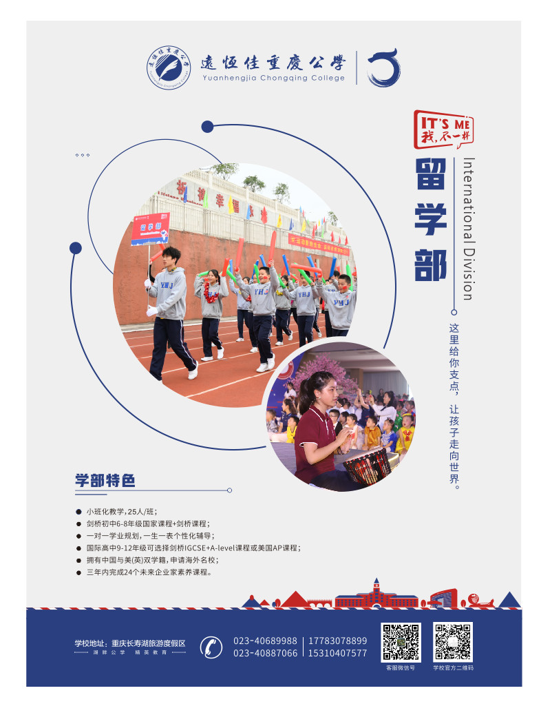 1.重慶市遠恒佳學(xué)校2020年,留學(xué)部美國(英國)高中招收初三畢業(yè),身心健康的學(xué)生,有中考成績,可直接提供當?shù)貐^(qū)縣中招辦出具的中考成績單;沒有中考成績的可直接預(yù)約參加留學(xué)部組織的面試與考試。